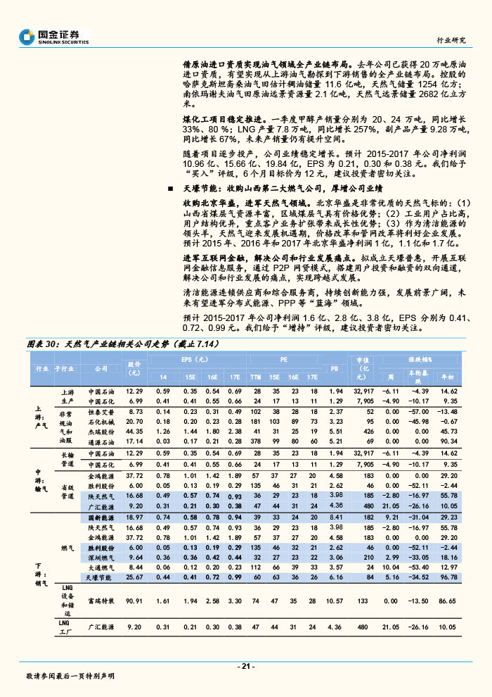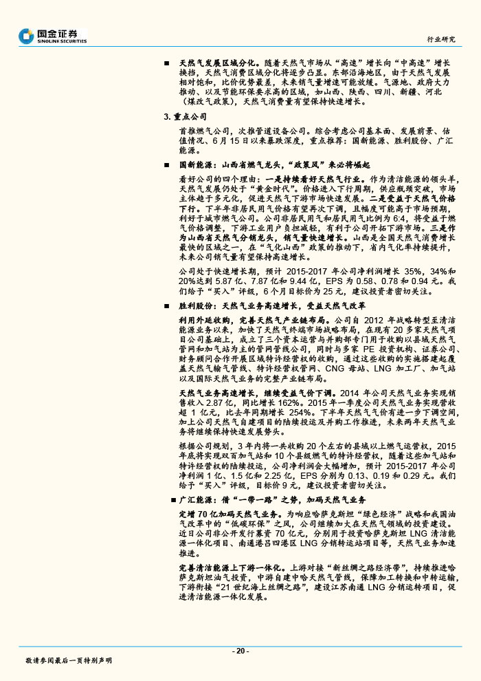 上海证券 2015年下半年燃气行业投资策略:关注供需变化和价改进展...