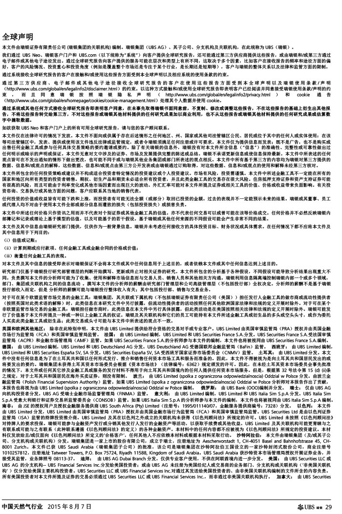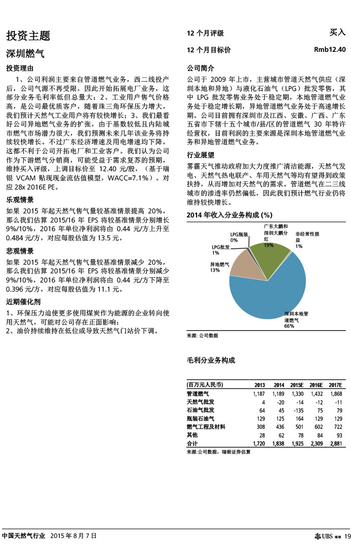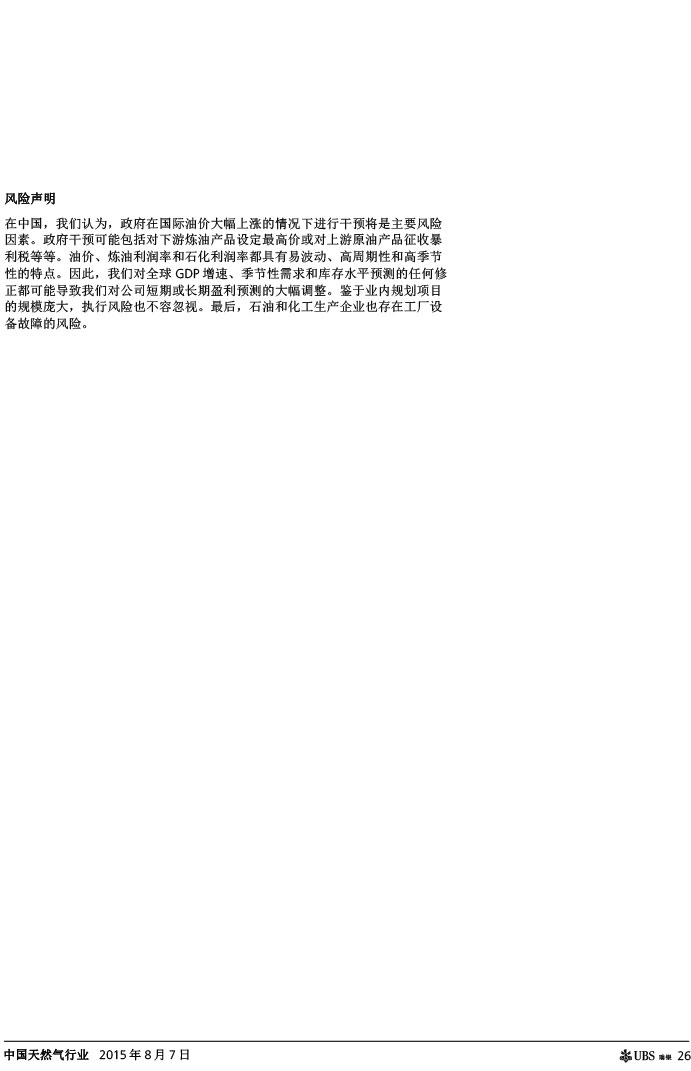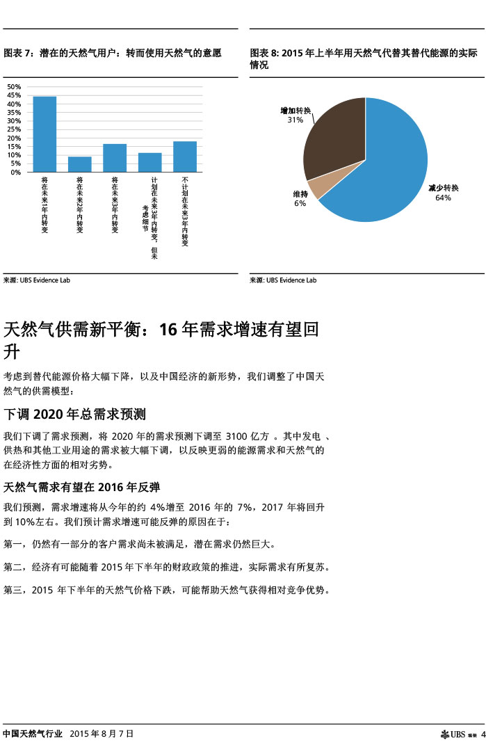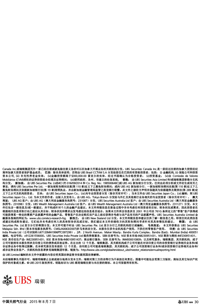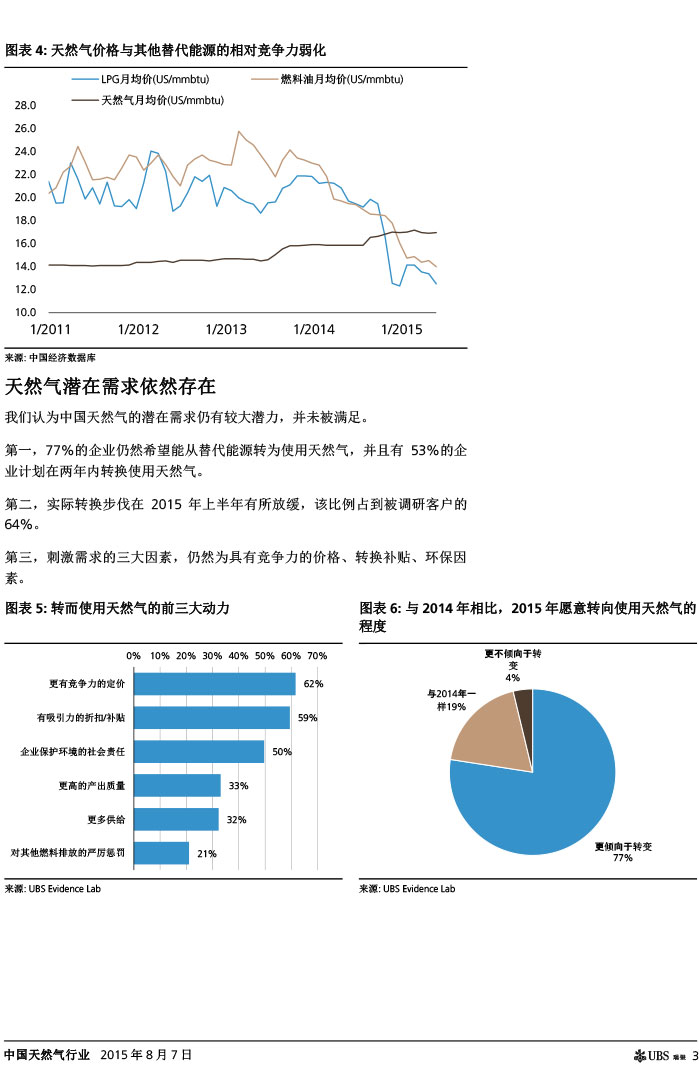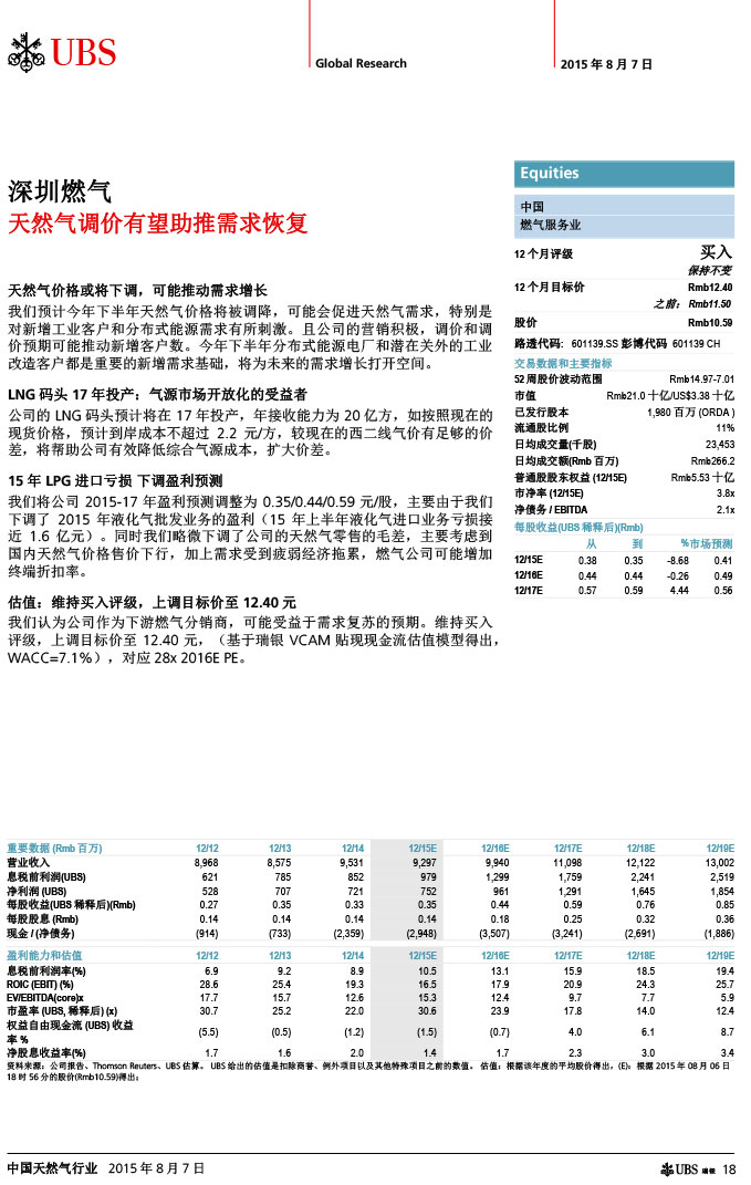 瑞银证券 中国天然气行业:气价下调如超预期,则需求有望复苏