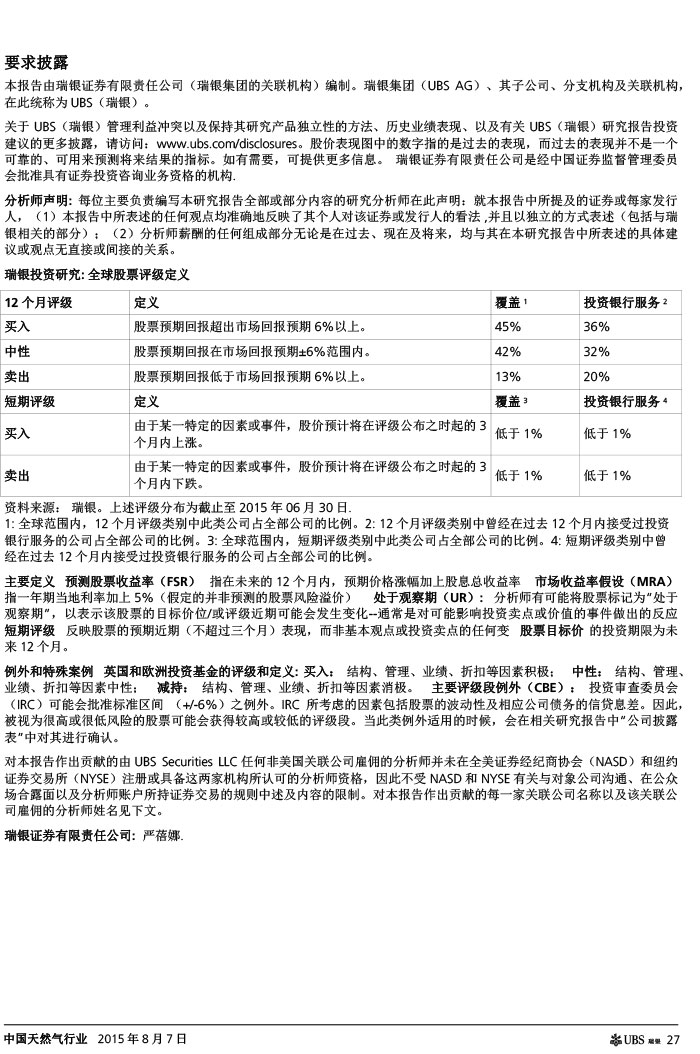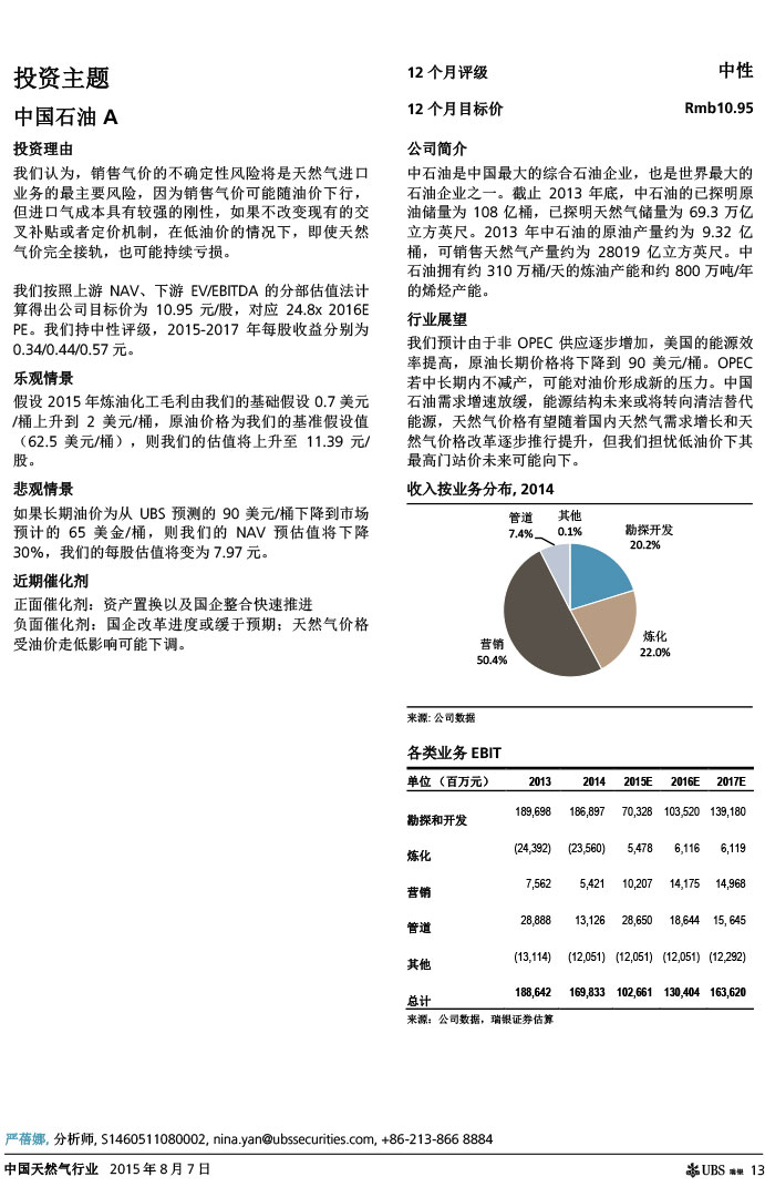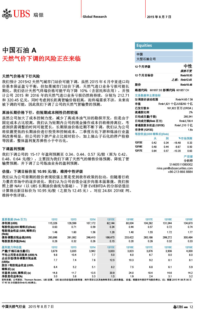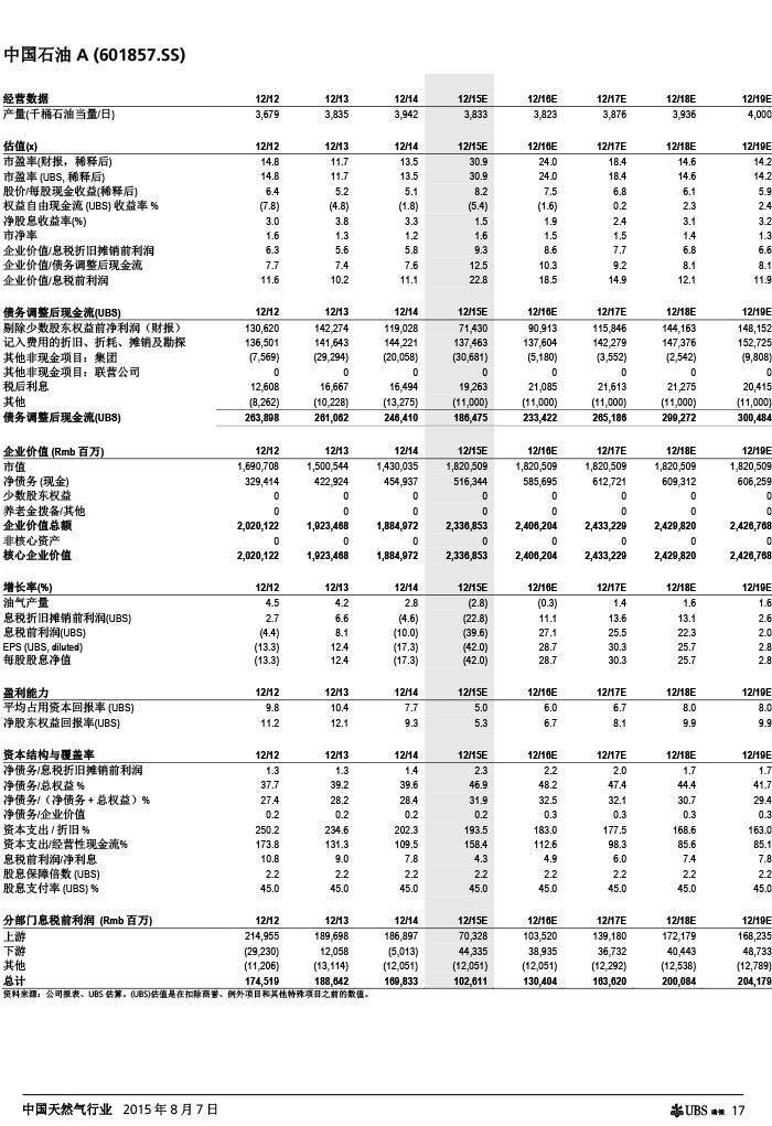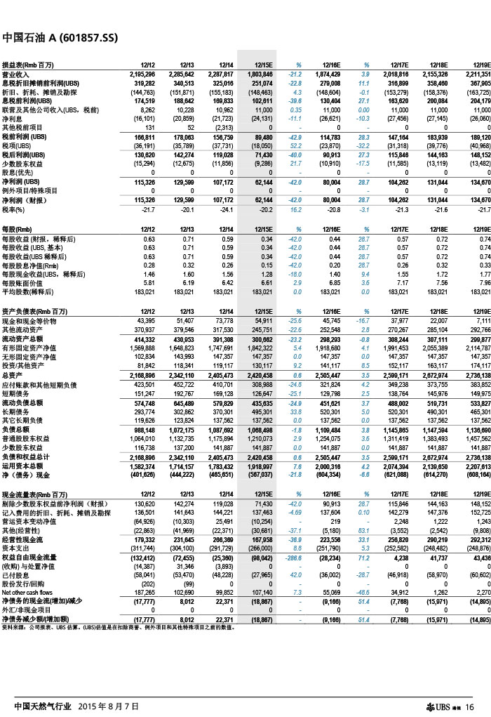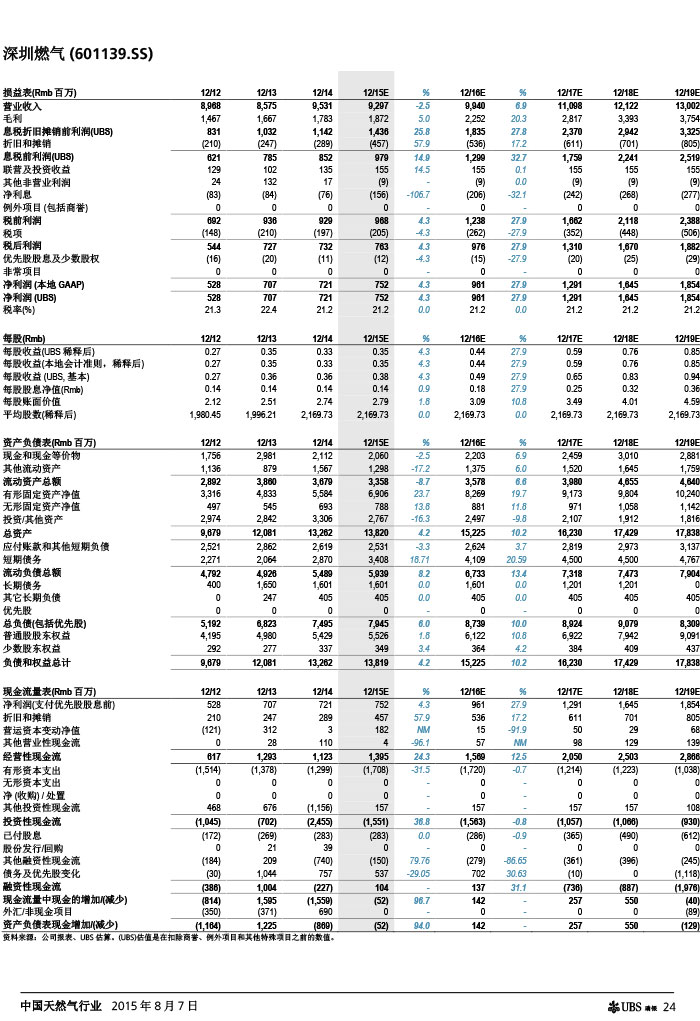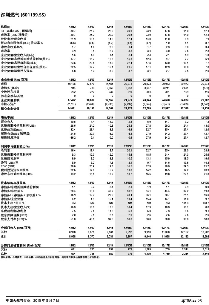 瑞银证券 中国天然气行业:气价下调如超预期,则需求有望复苏