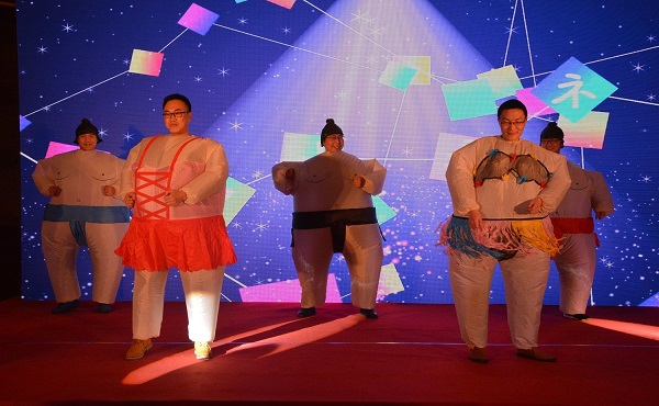 接下来,歌曲《父亲》、舞蹈《咋了,爸爸》、小品《约会》、微信游戏“数钱”、“答题红包”、“拔河、现场游戏“你划我猜”、抽二等奖、一等奖等节目逐一亮相,全场观众踊跃参与,热情互动,放松平日紧张的工作心情,感受着新年的热闹与喜悦。