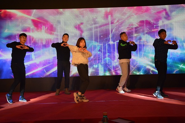 团拜会节目表演和趣味活动在舞蹈《燃烧我的卡路里》中正式拉开帷幕。舞蹈动感青春、活力四射,瞬间燃爆了现场气氛。